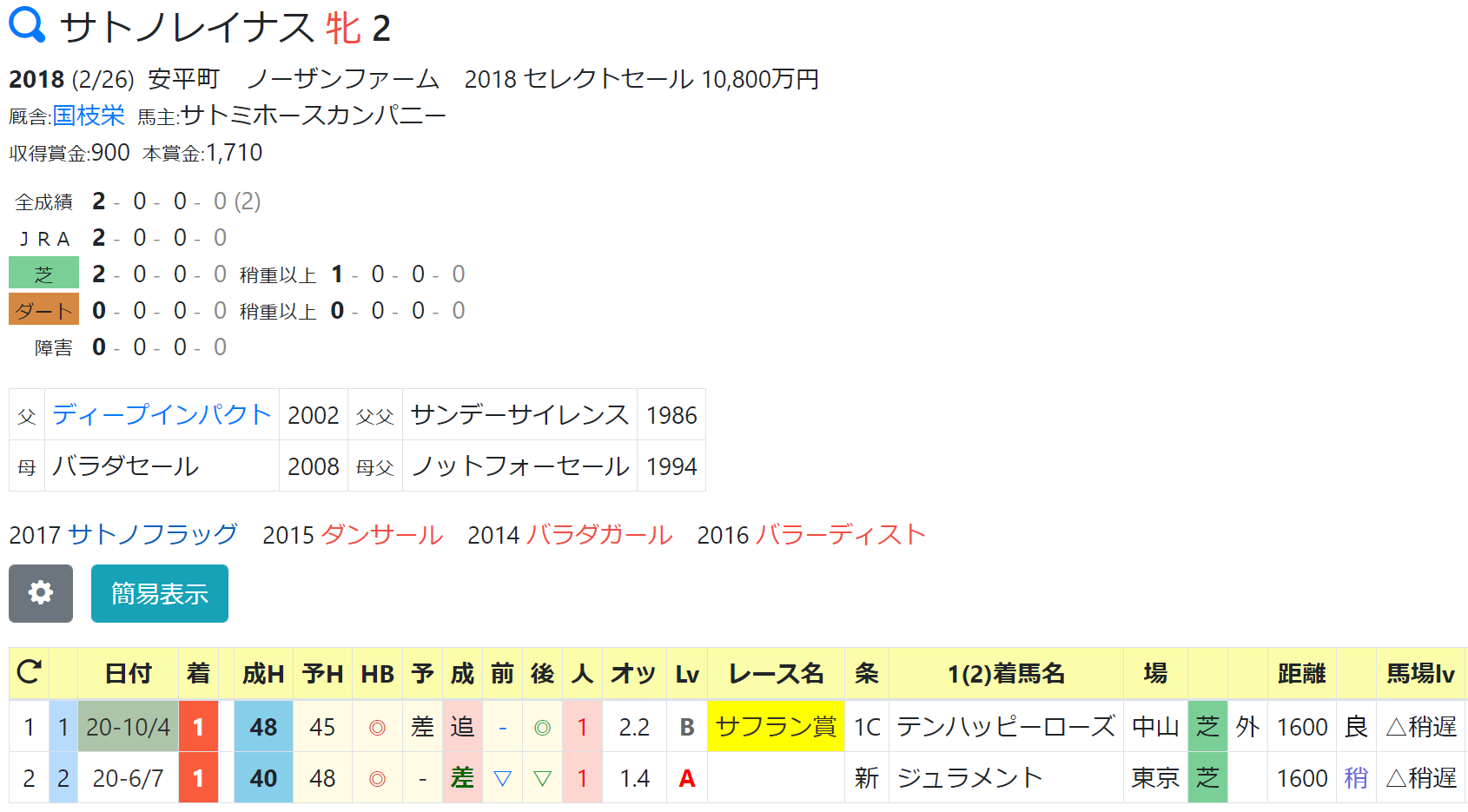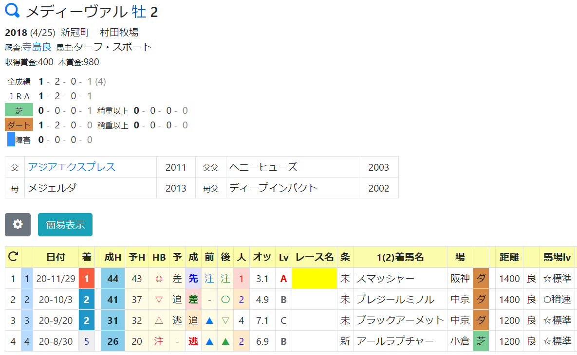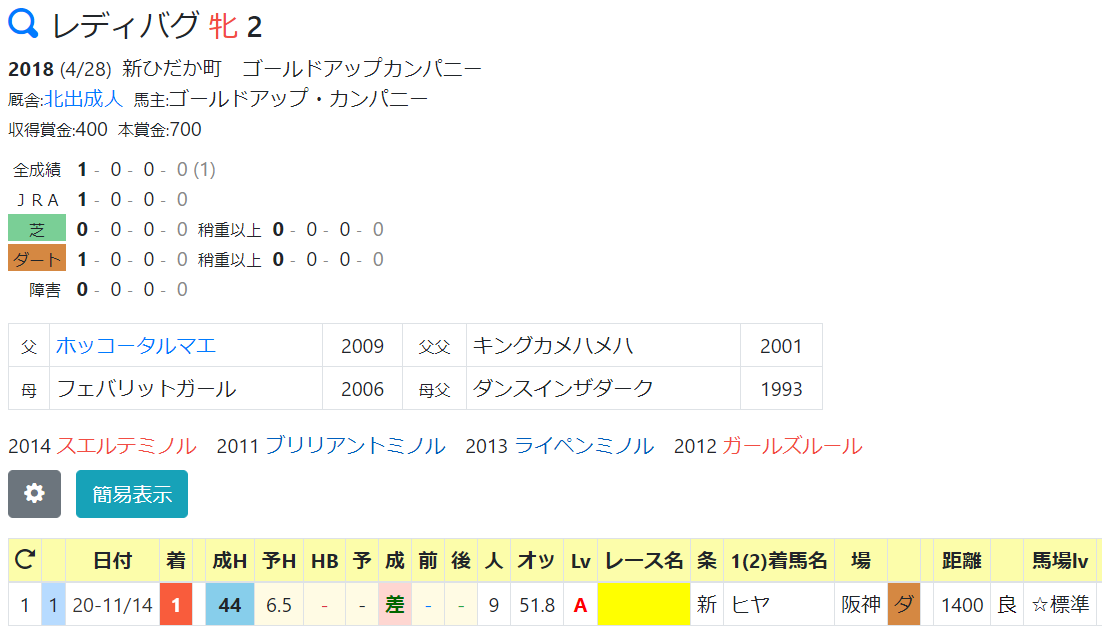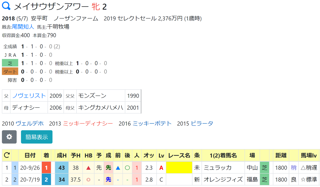 44:ハートオブアシティ(10/18未勝利戦1着)