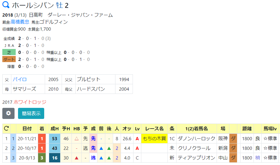 札幌ダート1700M 5戦