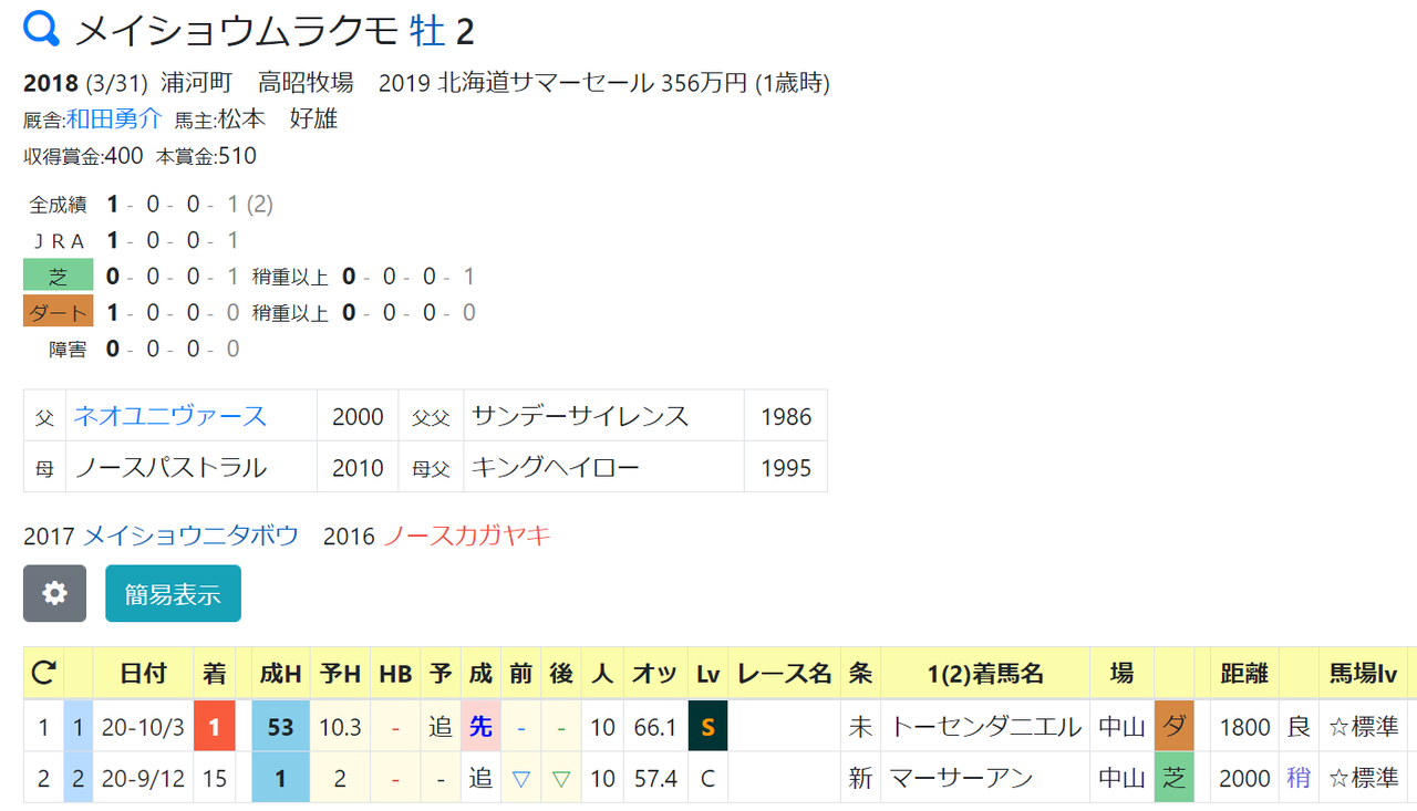 38:サニーオーシャン(10/18未勝利戦1着)