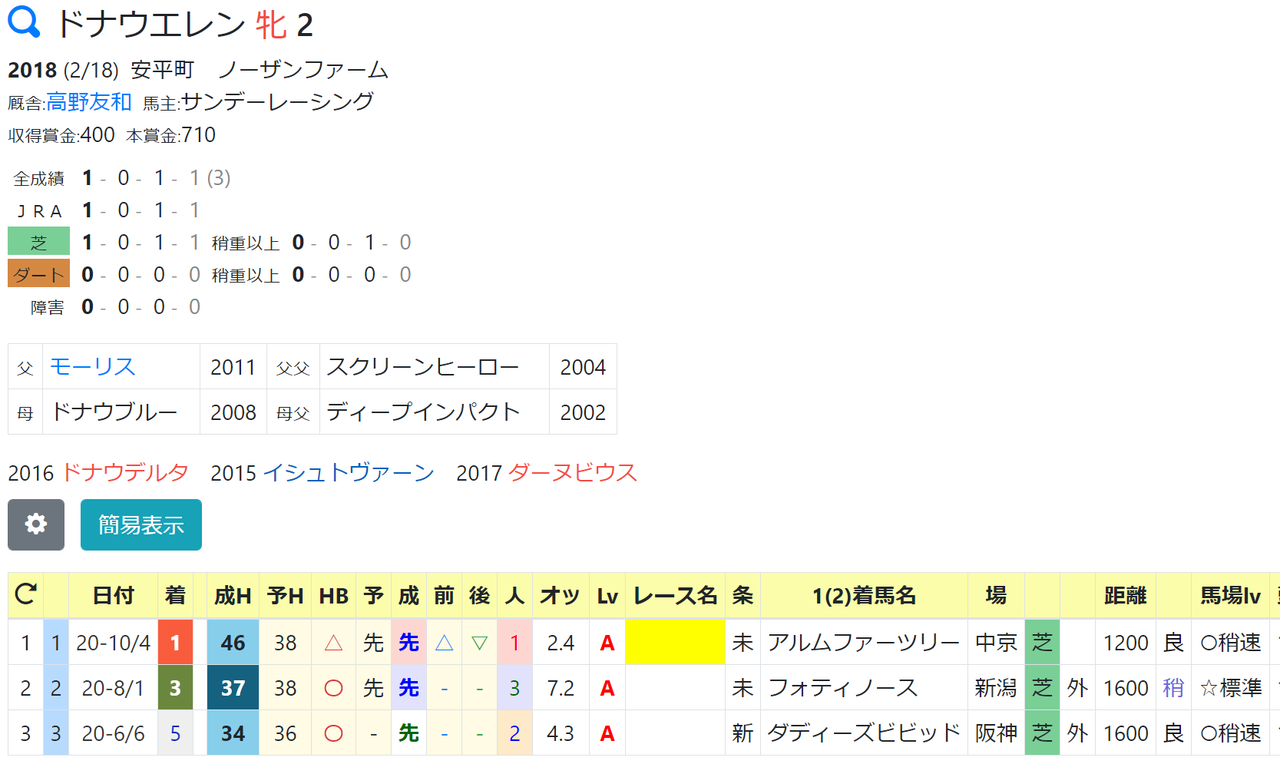 42:ダノンドリーマー(10/10未勝利戦1着)