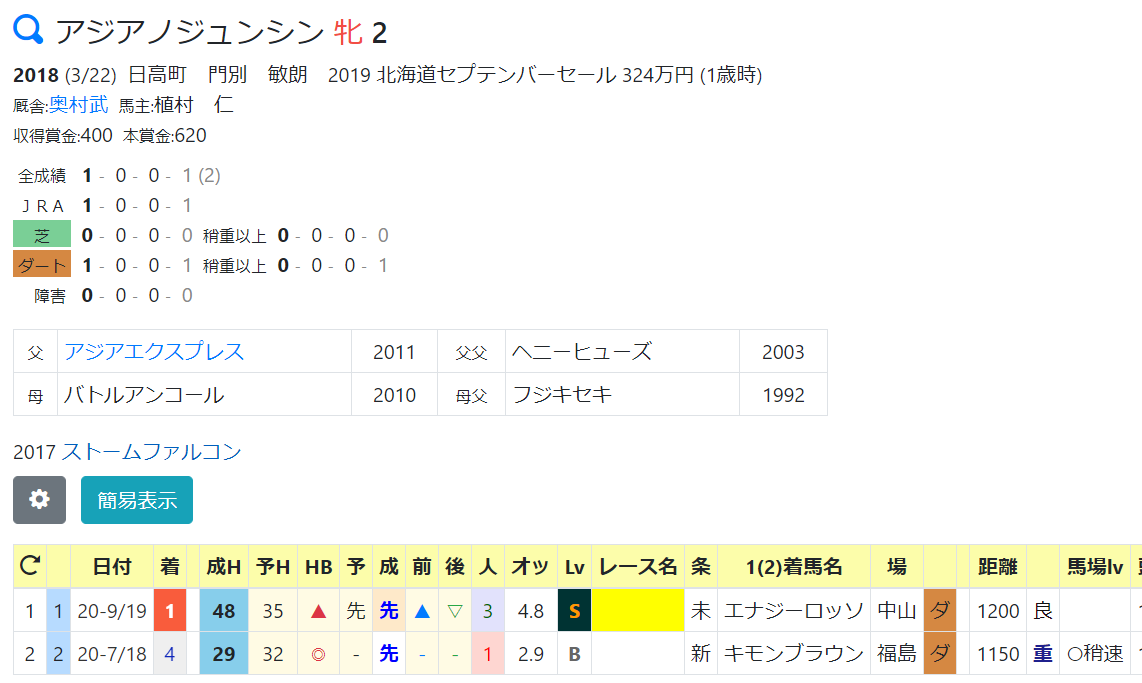 34:エナジーロッソ(8/22未勝利戦4着)