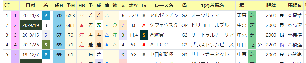 最高HB指数:70 2020/アルゼンチン共和国杯2着