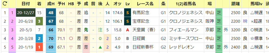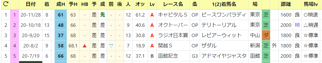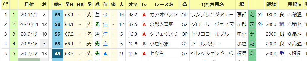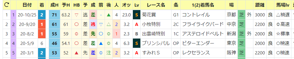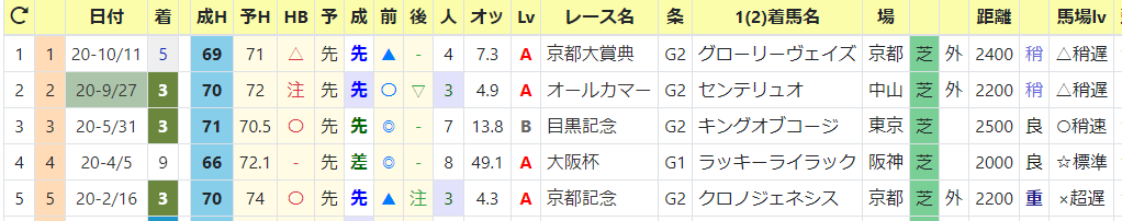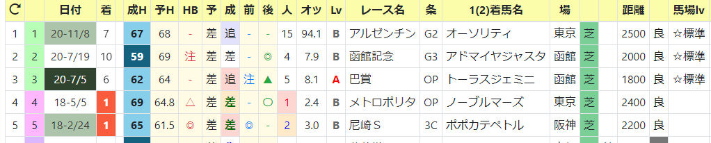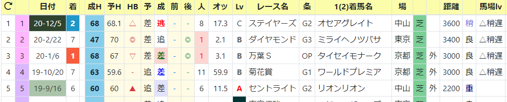 最高HB指数:68(2回) 2020/ステイヤーズS2着,万葉S1着