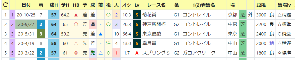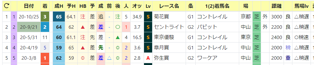 最高HB指数:64(2回) 2020/東京優駿3着,神戸新聞杯2着