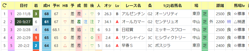 最高HB指数:68 2020/アルゼンチン共和国杯3着