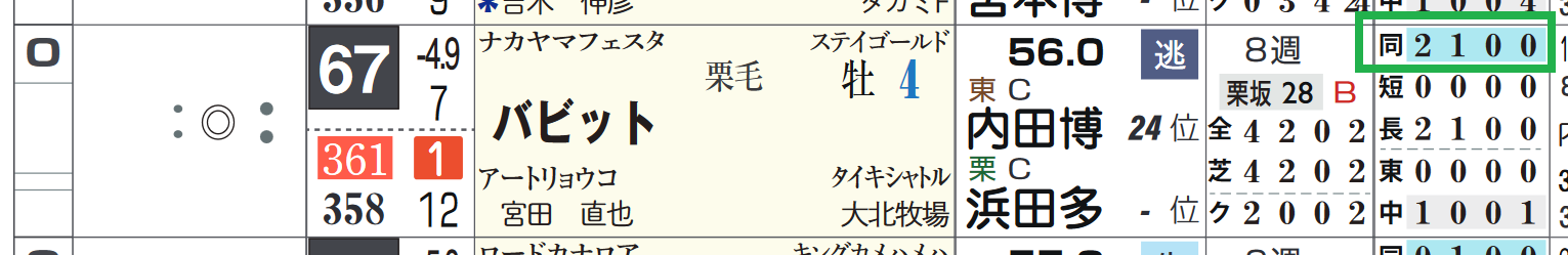 「距離実績」=【1・0・2・1】