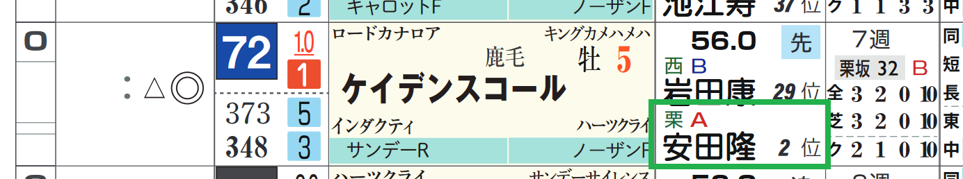 リーディング2位、「厩舎評価」=《A》