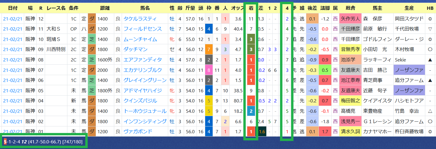 【「HBリスト」のサンプル】・全場版 ・競場別版
