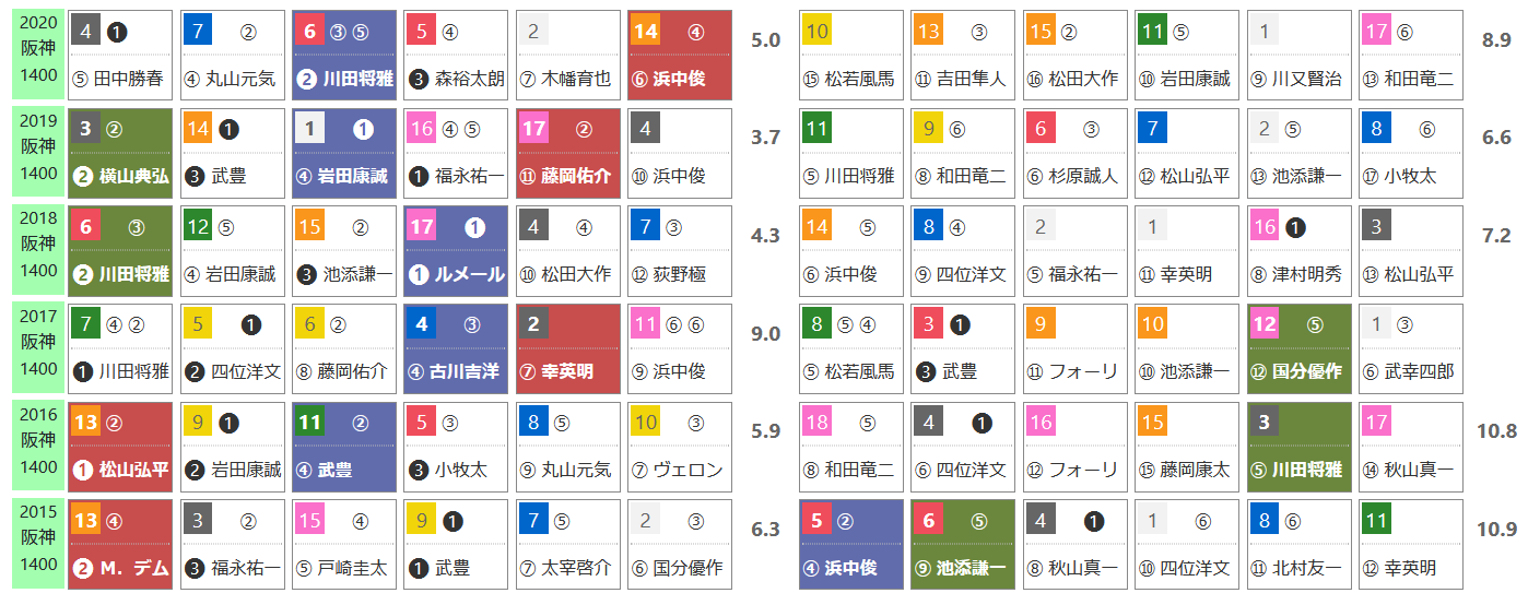 近3年は「推定後半3ハロン」1位が3着以内。「推定前半3ハロン」2位の好走が多い。