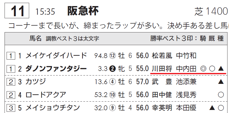 「騎手=◎、厩舎=○、種牡馬=▲」