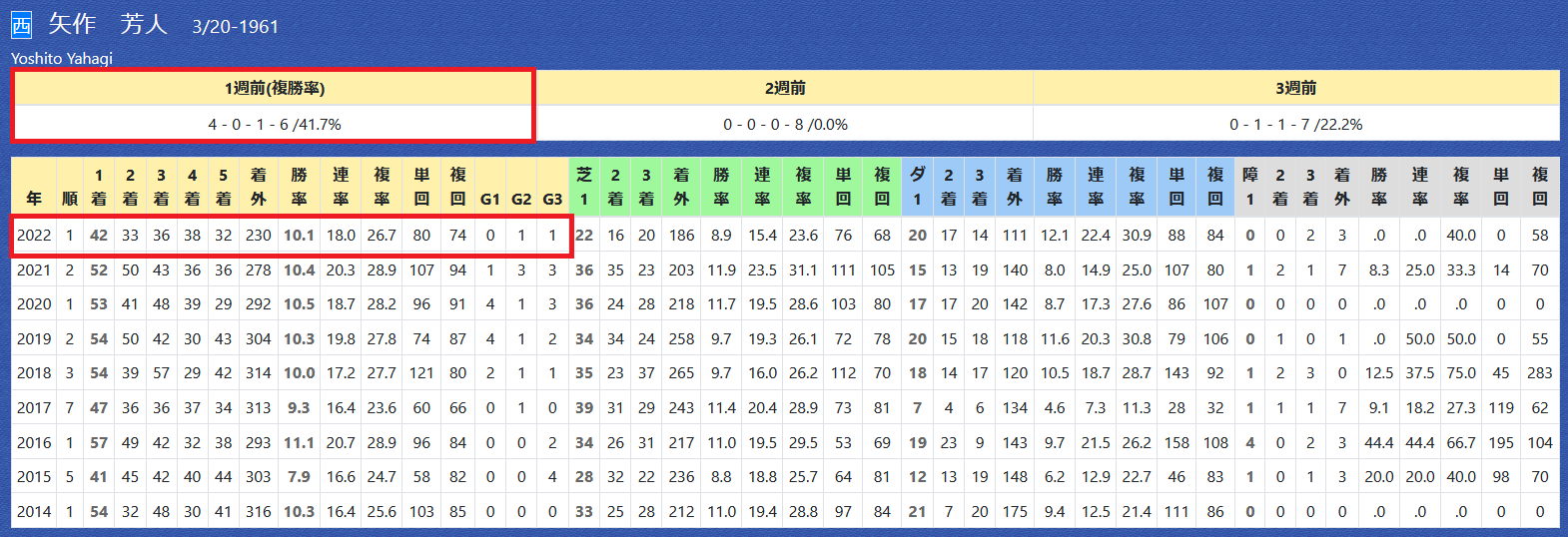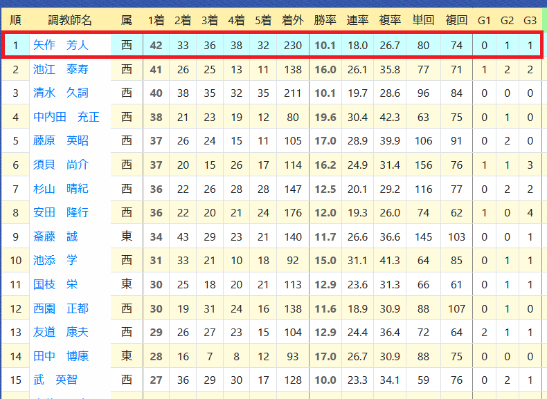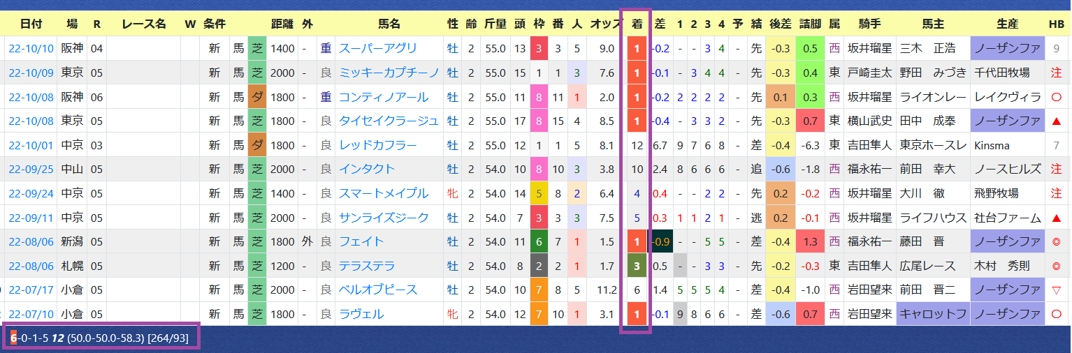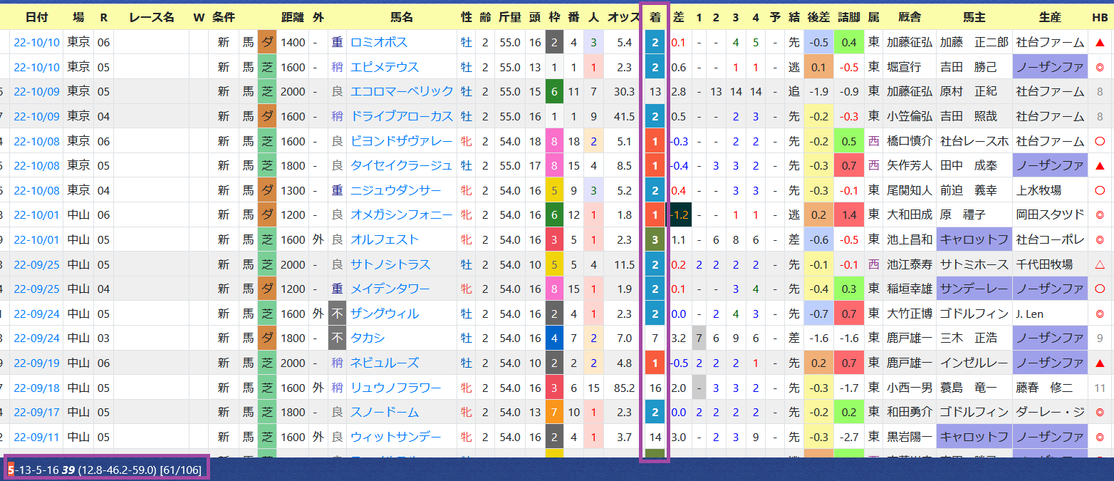 2022年10月12日 【データ分析】矢作芳人厩舎 【矢作芳人厩舎】先週は新馬戦で4戦4勝。年度別成績今年デビューの2歳の新馬戦は12戦6勝の好成績。新馬戦の成績池江泰寿厩舎を抜いてリーディング1位へ浮上。厩舎リーディング→トップページからログイン→「HBビューワ」→「厩舎成績」※会員登録(無料)で利用可能⇒「インスタグラム」「ツイッター」にて他情報も更新中