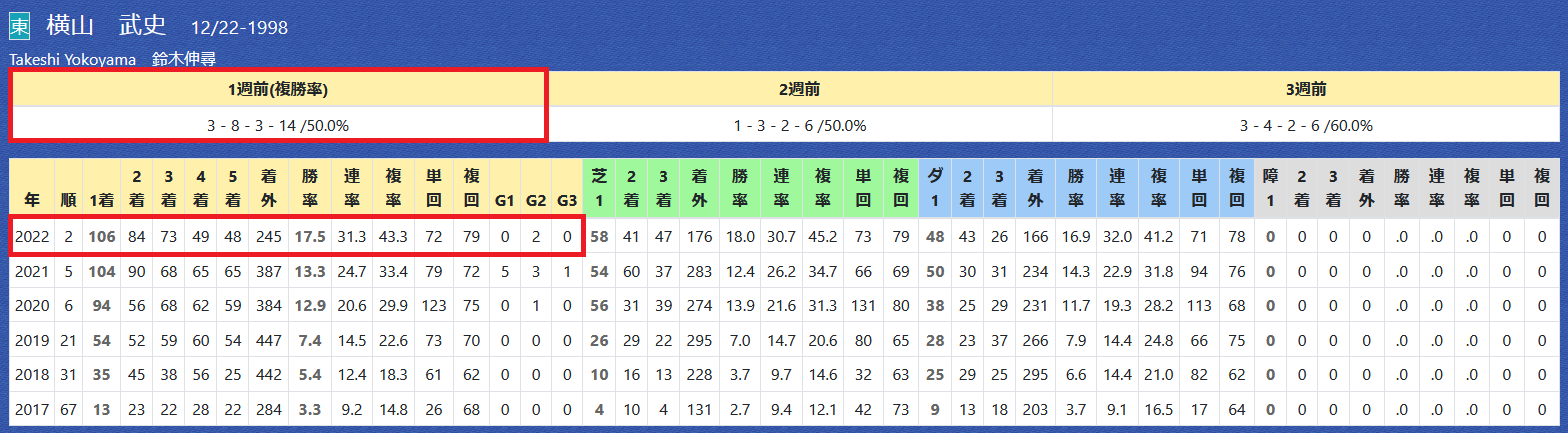 2022年10月12日 【データ分析】横山武史騎手 【横山武史騎手】昨年の勝ち数を上回ってリーディング2位。年度別成績今年の新馬戦は連対率が約50%と優秀。新馬戦の成績→トップページからログイン→「HBビューワ」→「騎手成績」※会員登録(無料)で利用可能⇒「インスタグラム」「ツイッター」にて他情報も更新中