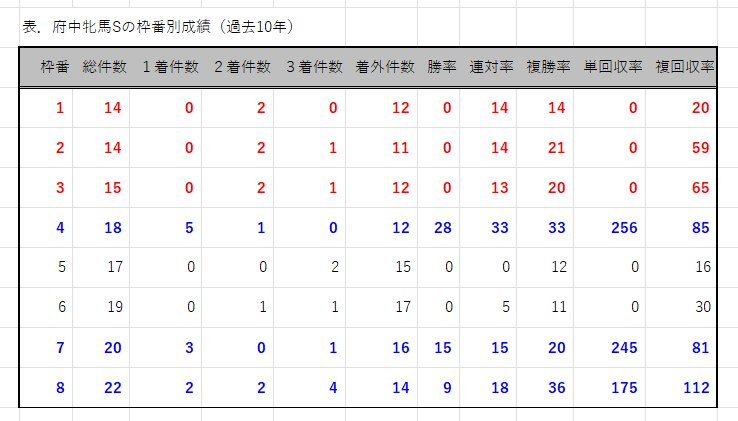 2022年10月11日 【データ分析】府中牝馬Sの枠番別成績 【府中牝馬Sの枠番別成績】4枠が半数の5勝、勝率&連対率は断トツ。7枠&8枠も計5勝。1~3枠は2着が最高。外枠が不利とはならない。⇒「インスタグラム」「ツイッター」にて他情報も更新中