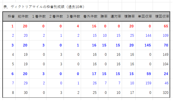 2022年05月09日 【データ分析】ヴィクトリアMの枠番別成績 【ヴィクトリアMの枠番別成績】昨年は3枠⑥グランアレグリアが1着。2着が4枠⑧ランブリングアレー&1枠①マジックキャッスルと内枠決着。3枠、6枠が3勝でトップタイ。枠による有利・不利はあまりない。⇒「インスタグラム」「ツイッター」にて他情報も更新中