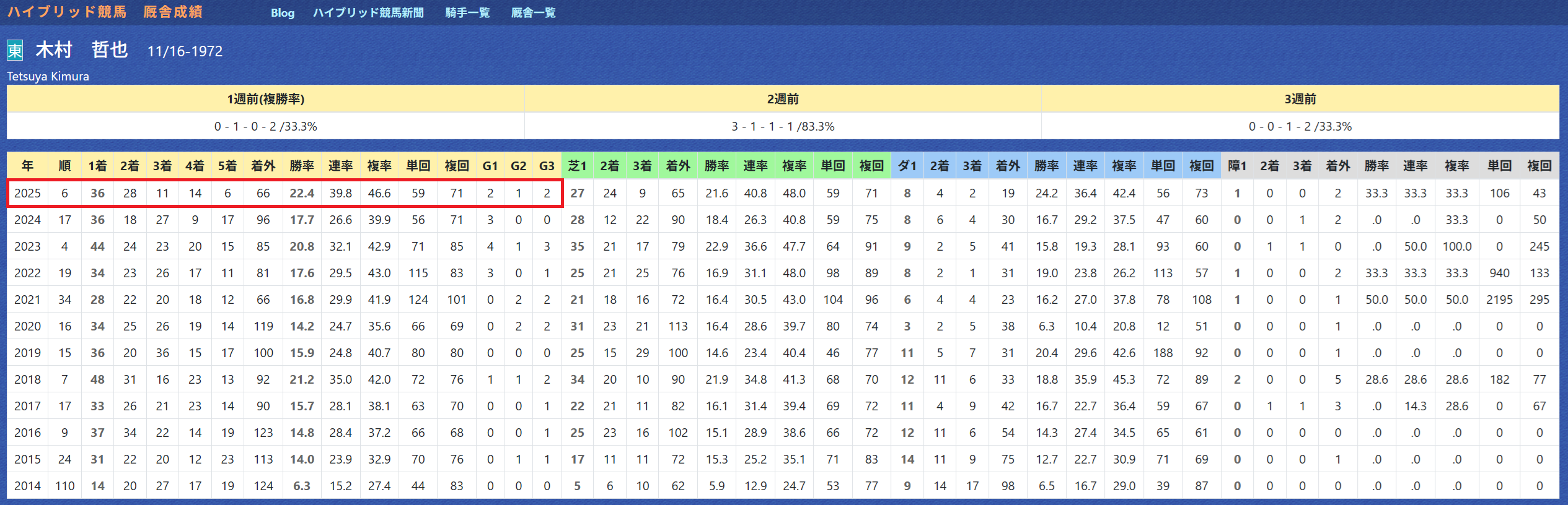 2025年11月12日 【データ分析】木村哲也厩舎 【木村哲也厩舎】既に昨年と同じ勝ち数。勝率~複勝率すべて自身最高。年度別成績「推定後半3ハロン」3位以内で勝率35%&複勝率68%のハイアベレージ。エリザベス女王杯のレガレイラ、武蔵野Sのコスタノヴァもチャンス大。「推定後半3ハロン」3位以内の成績→トップページからログイン→「HBビューワ」→「厩舎成績」※会員登録(無料)で利用可能⇒「インスタグラム」「ツイッター」にて他情報も更新中
