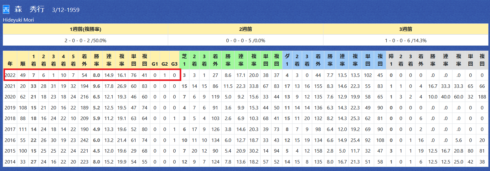 2022年04月15日 【データ分析】森秀行厩舎 【森秀行厩舎】ジャングロがニュージーランドTを逃げ切り勝ち。4年ぶりの重賞制覇。年度別成績3着内馬はすべて4角5番手以内。勝ち鞍は1200m以下に集中。1~3着内馬の好走距離&4角位置→トップページからログイン→「HBビューワ」→「厩舎成績」※会員登録(無料)で利用可能⇒「インスタグラム」「ツイッター」にて他情報も更新中