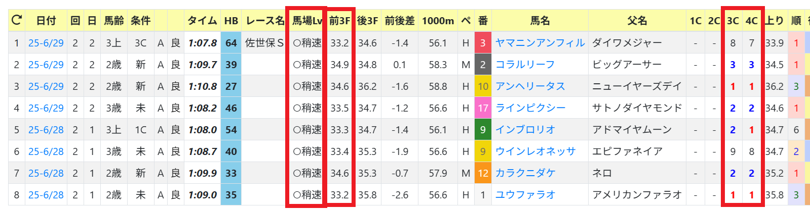 2025年07月03日 【データ分析】小倉・芝1200mの傾向 【小倉・芝1200mの傾向】開幕週の8レースで4角3番手以内が6勝。前半33秒台でも先行馬が止まらない。馬場レベルは「高速」ではなく「稍速」。開幕週の勝ち馬一覧→トップページからログイン→「HBビューワ」→「コース勝ち馬一覧」※会員登録(無料)で利用可能⇒「インスタグラム」「ツイッター」にて他情報も更新中