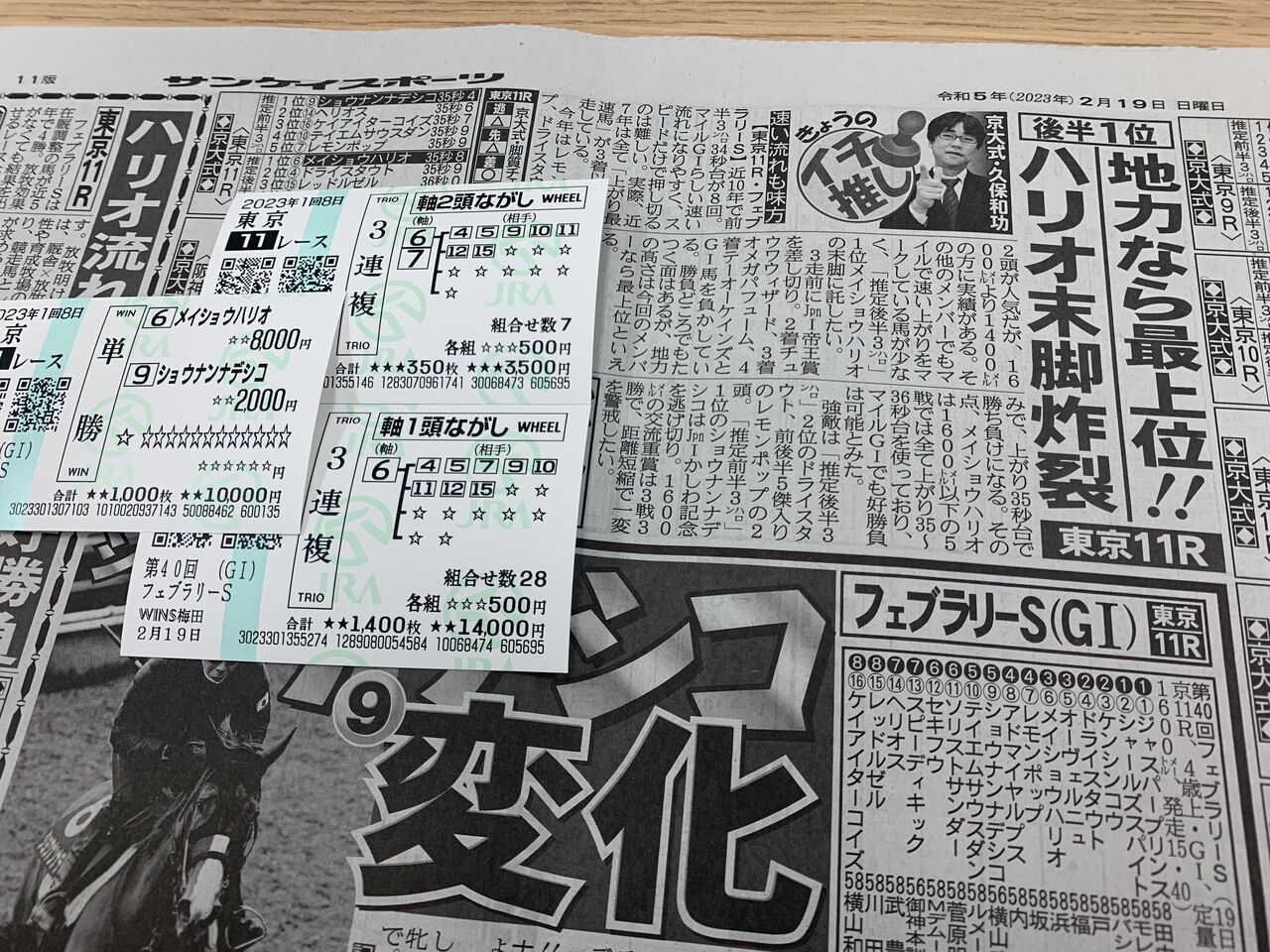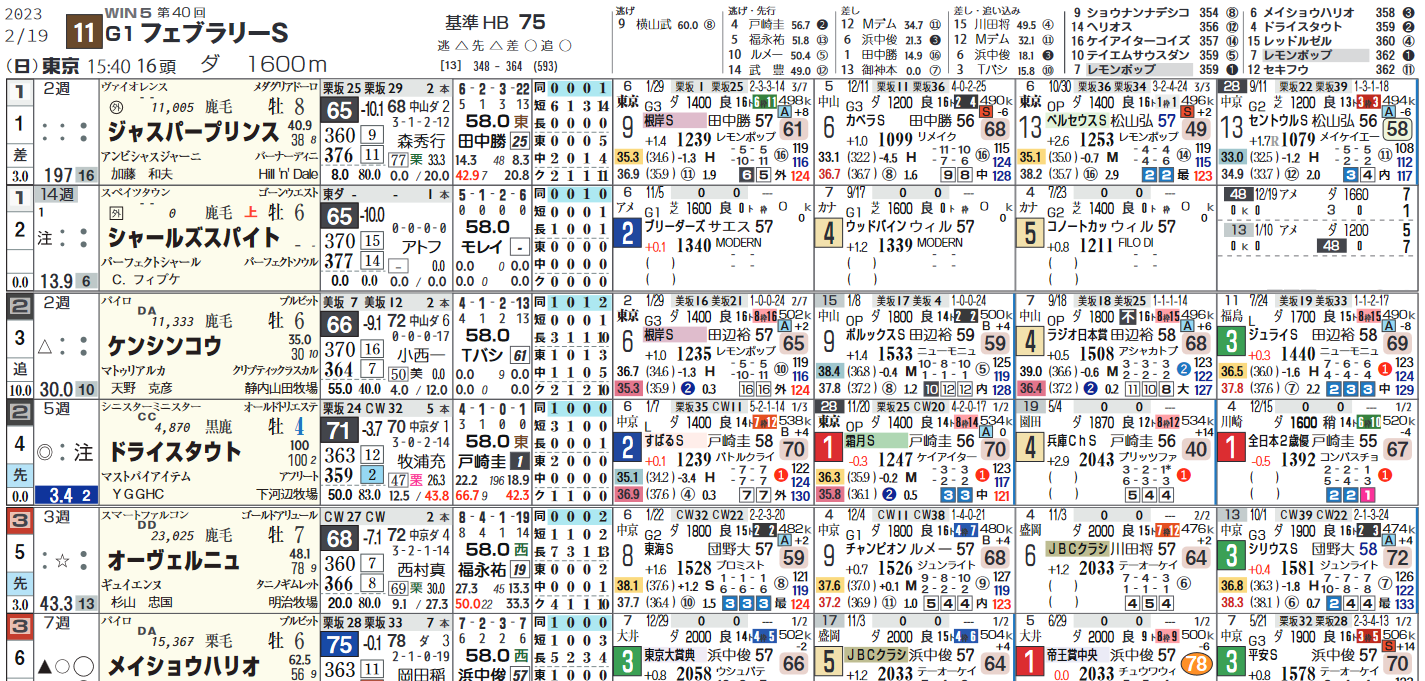 今年のGⅠ第一弾のフェブラリーSは「推定後半3ハロン」1位の◎⑥メイショウハリオはスタートで躓いて落馬寸前の大不利、直線は大外から伸びて3着まで浮上。