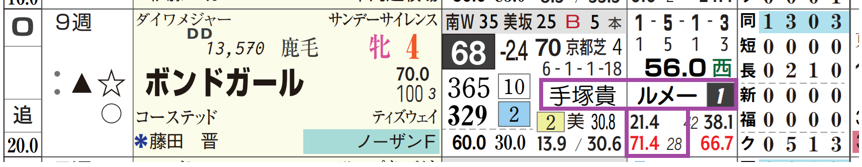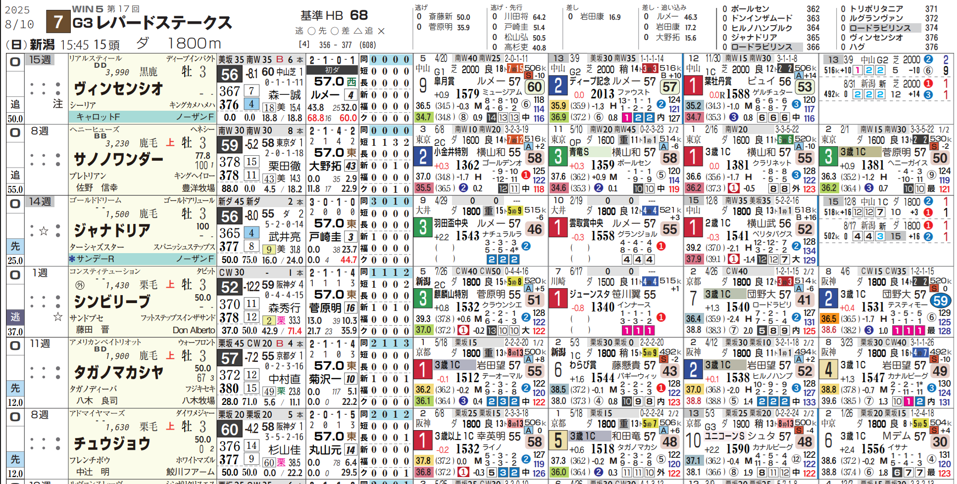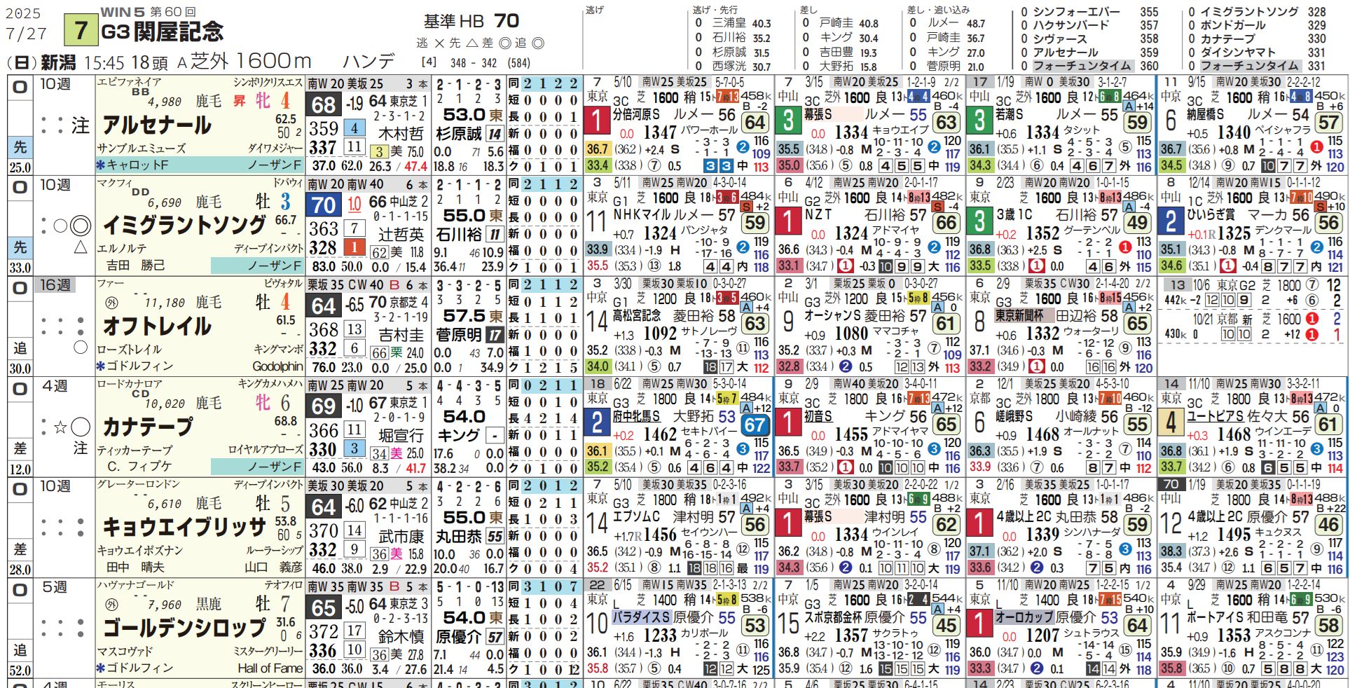 2025年07月24日 【想定版HB新聞】関屋記念 ■関屋記念の想定版■*画像は「ハイブリッド新聞」【新聞項目の説明】ハイブリッド新聞(タテ版):新聞内・ブログハイブリッド新聞(ヨコ版):新聞内・ブログデータシート:新聞内・ブログボンドガールは秋華賞で上がり最速で2着の実績あり。上がり最速オープン&重賞で5連対。「クラス成績」=【0・5・1・3】手塚厩舎は新潟の芝の勝ち数が2位と優秀。「厩舎の該当競馬場の成績」=勝ち数2位、勝率13.9%&複勝率30.6%ルメール騎手とのコンビは複勝率70%超えと好相性。「騎手×厩舎成績」=勝率21.4%&複勝率71.4%(28レース)続きを読む