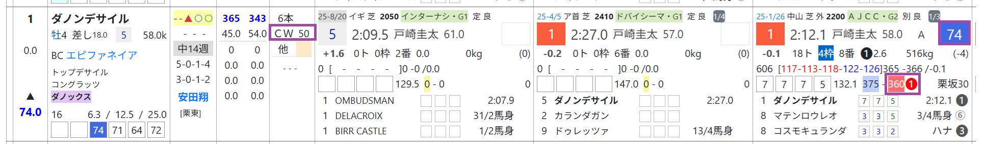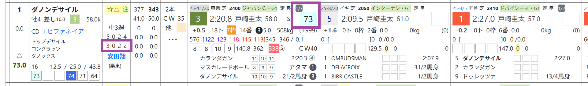 ダノンデサイルはオープン&重賞で3勝、ジャパンCで「ハイブリッド指数」=《73》をマークして3着、今回の出走馬の7頭の中で最先着。
