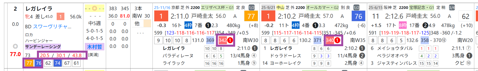 レガレイラは近2走は上がり最速、「ハイブリッド指数」=《76》超え、木村厩舎は中山の芝の勝率20%&複勝率43%の好成績。