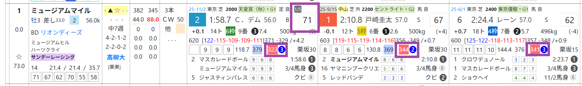 ミュージアムマイルは天皇賞(秋)で「ハイブリッド指数」=《71》をマークして