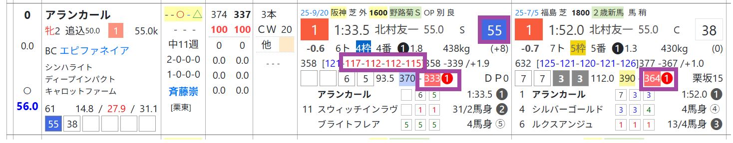 2着、今回の出走馬の5頭の中で最先着、近3走すべて上がり3位以内。