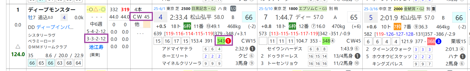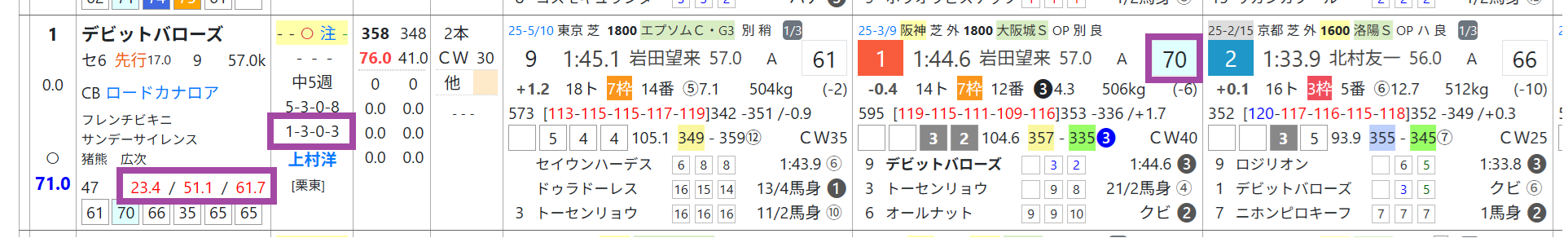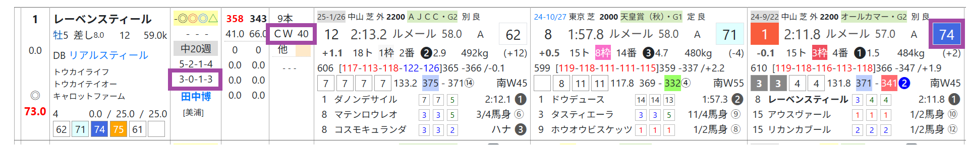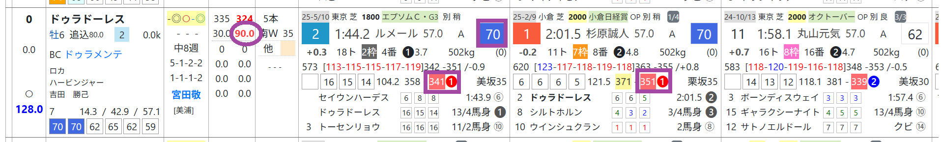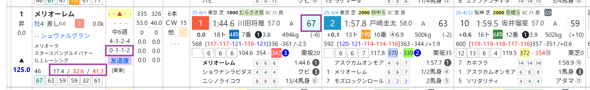 イミグラントソングはニュージーランドTが「レースレベル」=《S》とハイレベル、2走前&3走前に上がり最速をマーク、1週前の「追切指数」=《40》と優秀。