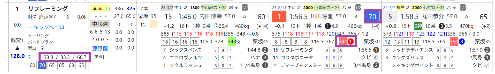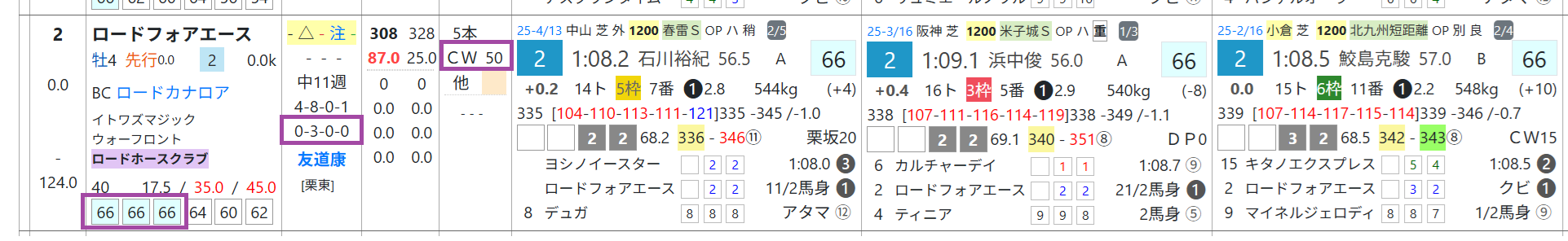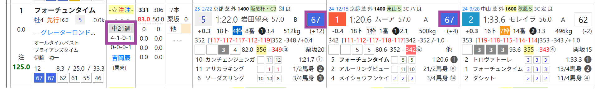 フォーチュンタイムは6戦4勝&2着1回の好成績、近2走は「ハイブリッド指数」=《67》をマーク、休み明けで大幅な馬体重の増減をチェック。
